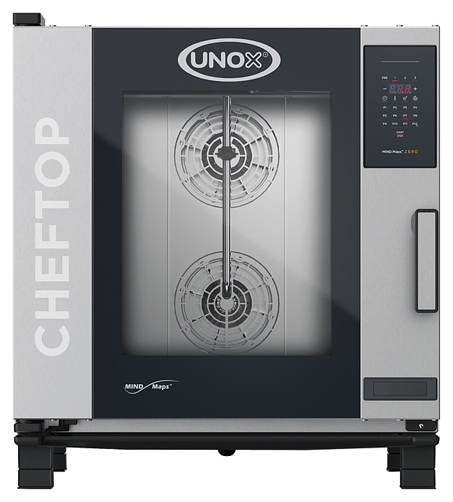 Пароконвектомат UNOX XEVC-0711-EZRM серии CHEFTOP MIND.Maps™ ZERO предназначен для приготовления различных блюд, выпечки хлебобулочных и кондитерских изделий на предприятиях общественного питания и торговли, в пекарнях и кондитерских. Модель оснащена встроенной в дверь светодиодной LED-подсветкой и C-образными с зубчатыми нишами направляющими. Внутреннее открывающееся стекло облегчает чистку и обеспечивает максимальную гигиену. Камера с закругленными углами выполнена из нержавеющей стали AISI 304, направляющие - из профилированной стали, дверной замок - из высокопрочного самосмазывающегося технополимера, внутренний штифт дверной ручки - из углеродного волокна. Оборудование должно быть подключено к сети водоснабжения (вентиль 3/4″). В комплект поставки входят 4 пластиковых держателя, набор для подключения к водопроводной сети (шланг подачи воды, механический фильтр и невозвратный клапан 3/4) и набор «Starter Kit» (8 саморезов, гаечный ключ и наклейка). Листы для выпечки в комплект поставки не входят и приобретаются отдельно. Рекомендуется дополнительно приобрести водоумягчитель и фильтр-систему для очистки и смягчения воды. Подробнее о необходимости водоподготовки читайте здесь. Режимы выпечки: