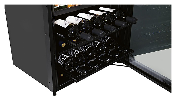 Минибар Indel B K Cellar 36 Ecosmart предназначен для охлаждения и кратковременного хранения скоропортящихся продуктов и напитков в отелях, офисах и в домашних условиях. Модель оснащена 4 вместительными выдвижными полками, окрашенными под дерево и подходящими для размещения стандартных бутылок с вином, и специальной секцией для закусок и прохладительных напитков.