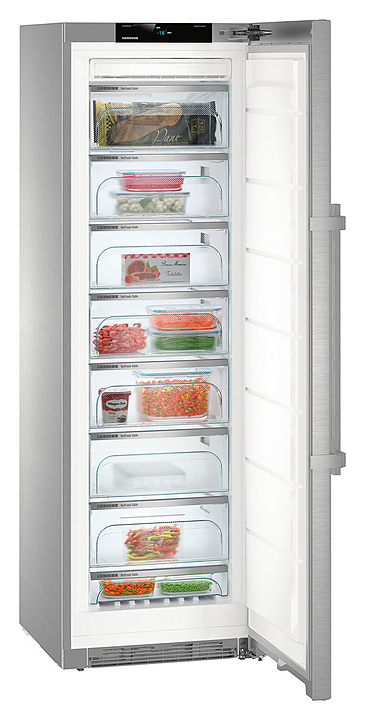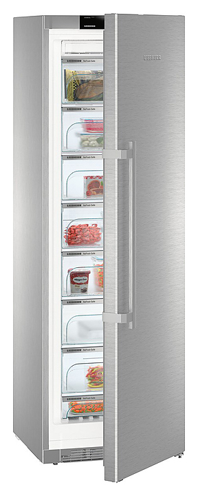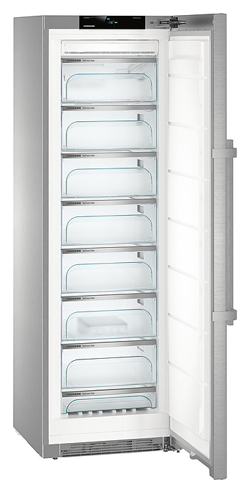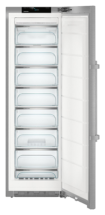 Морозильник Liebherr SGNes 4375 серии BluPerformance предназначен для замораживания и длительного хранения свежих продуктов и полуфабрикатов, а также для приготовления пищевого льда в частных домах, квартирах, отелях и офисах. Модель оснащена сенсорным цветным TFT-дисплеем с высоким разрешением, установленным за дверью и позволяющим осуществлять интуитивно понятную настройку температуры. Боковые стенки выполнены из легированной стали с покрытием SmartSteel, дверь - из нержавеющей стали с покрытием SmartSteel, ручка - из алюминия. Особенности: