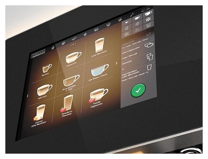 Кофемашина Franke A300 NM 1G 2P H1 W4 используется на предприятиях общественного питания и торговли, в офисах и отелях для приготовления чая, кофе и кофейных напитков. Модель оснащена интерактивным сенсорным экраном диагональю 8 дюймов с реалистичными изображениями и режимом Quick Select. Особенности: