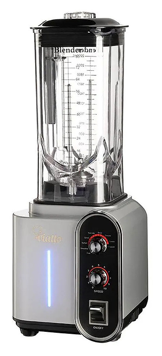 Блендер VIATTO VA-BL1899GR предназначен для измельчения продуктов и приготовления различных коктейлей, смузи, фраппе, соусов, фруктовых и овощных пюре и муссов на предприятиях общественного питания и торговли. Модель оснащена механической панелью управления с вариатором скорости. Корпус выполнен из пластика серого цвета, стакан - из прозрачного тритана, нож - из нержавеющей стали. Особенности: