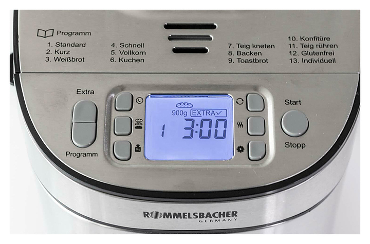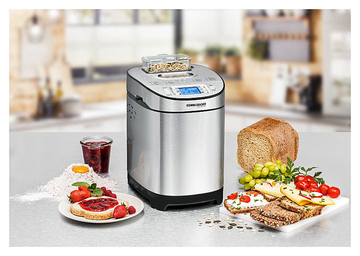 Хлебопечь Rommelsbacher BA 550 используется на предприятиях общественного питания и торговли, в частных домах и квартирах для приготовления хлеба, хлебобулочных изделий, тортов и джема. Модель оснащена ЖК-дисплеем с подсветкой, смотровым окном, диспенсером для дополнительных ингредиентов (орехов и изюма), съемным тестомесом и формой для выпекания. Корпус выполнен из нержавеющей стали. В комплект поставки входят мерный стакан, мерная ложка и крюк для вымешивания. Особенности: