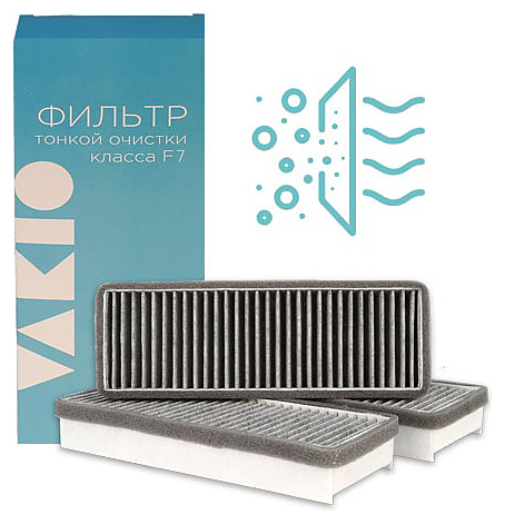 Фильтр Vakio F7 используется совместно с рекуператорами воздуха. Фильтр имеет угольные вкрапления и задерживает частицы размером более 1 микрометра: пыль, пух, пыльцу растений, споры плесени и грибов, бактерии. Вкрапления угля (более 110 г/м2) обладают абсорбирующим свойством и позволяют отфильтровывать пары вредных веществ: фенола, бензола, толуола, ртути и другие.