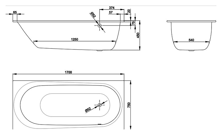 Ванна BETTE Comodo 1620-000 170x75 см, сталь