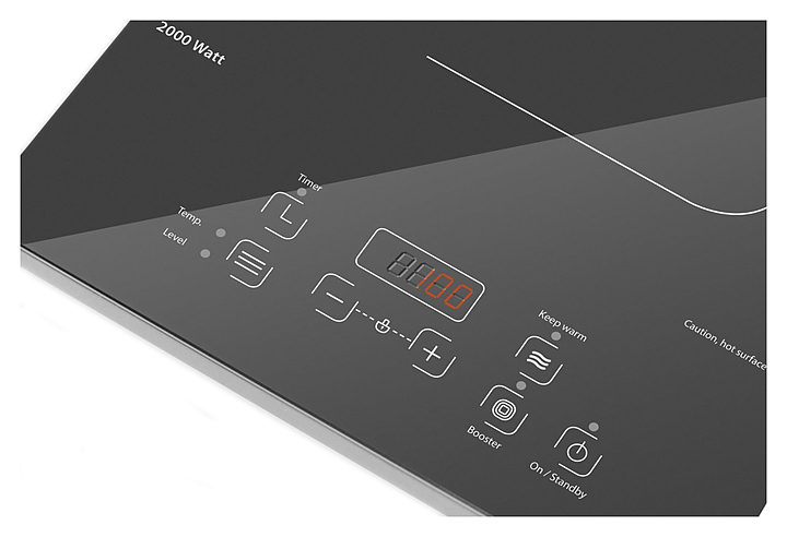Настольная индукционная плита CASO C 2000 предназначена для приготовления и быстрого разогрева блюд в частных домах, квартирах, отелях и офисах. Модель оснащена сенсорной панелью управления с большим красным цифровым дисплеем и датчиком наличия посуды на конфорке. Корпус выполнен из стеклокерамики. Особенности: