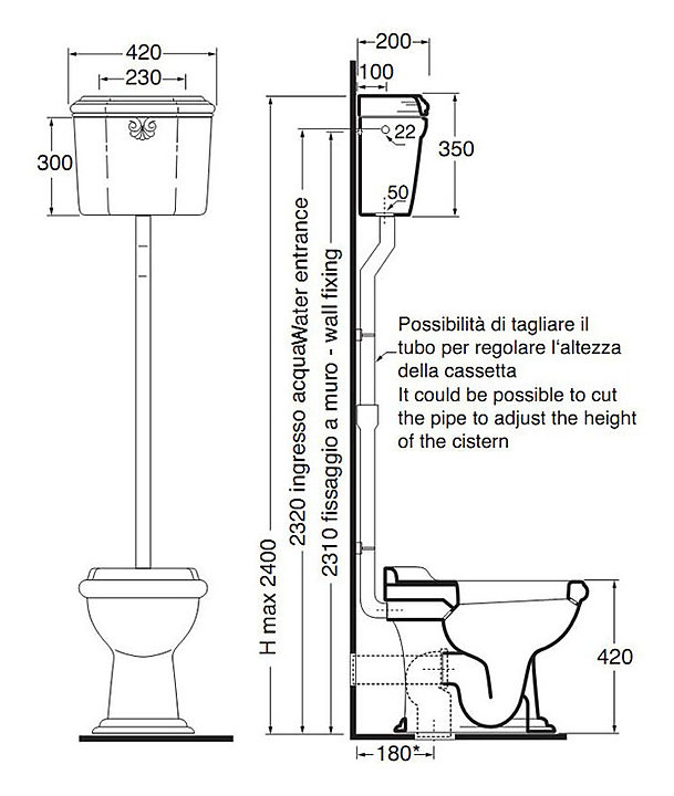 Навесной бачок Azzurra JUBILAEUM JUCSAL000000BI устанавливается сверху напольных унитазов JUBILAEUM JUVCTPB00000BI. Он выполнен в классическом стиле. Благодаря высокой установке бачок не занимает полезное место в помещении и обеспечивает максимальный слив воды. Изделие изготовлено из санфаянса. Характеристики: