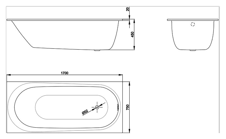 Ванна BETTE Comodo 1250-035 PLUS 170x75 см, сталь