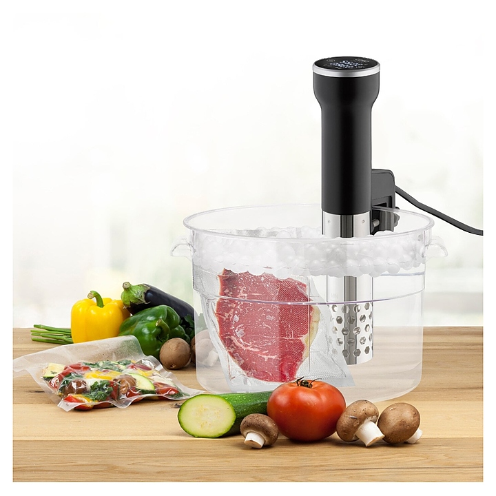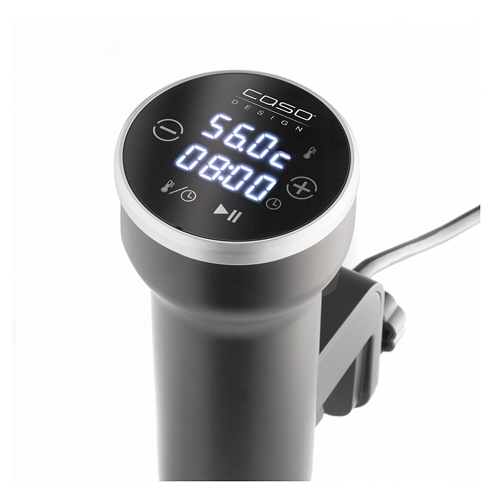 Аппарат Sous Vide CASO SV 400 используется в частных домах и квартирах для приготовления пищи в герметичных пакетах в горячей воде при невысоких температурах, что позволяет сохранить в продуктах все питательные вещества, витамины и минералы и обеспечить насыщенный вкус мяса и овощей. Модель оснащена сенсорной панелью управления с дисплеем и световым индикатором. Корпус выполнен из нержавеющей стали. Особенности:
