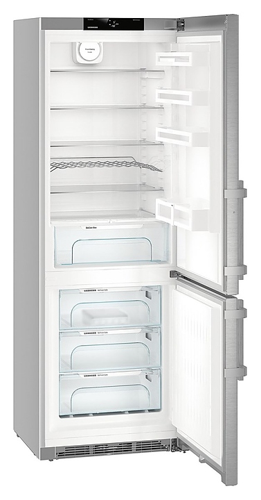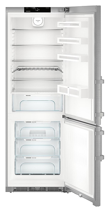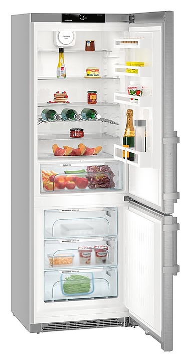 Двухкамерный холодильник Liebherr​ CNef 5735 серии BluPerformance предназначен для охлаждения и кратковременного хранения продуктов, полуфабрикатов и напитков, замораживания и длительного хранения свежих продуктов, а также для приготовления пищевого льда в частных домах, квартирах, отелях и офисах. Модель оснащена сенсорным монохромный TFT-дисплееем с высоким разрешением и контрастом, установленный за дверью, позволяет осуществлять интуитивно понятную настройку температуры. Боковые стенки выполнены из стали, дверь - из нержавеющей стали с покрытием SmartSteel, ручка - из алюминия.