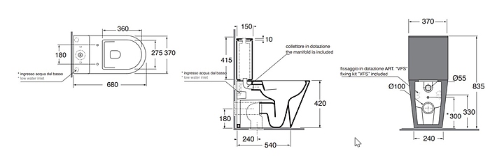 Напольный унитаз-моноблок без бачка Azzurra FORMA FMVCMPE00000BI выполнен в современном стиле. Для этой серии характерны мягкая овальная форма чаши и четкие геометрические линии основания. Напольная конструкция обеспечивает легкий монтаж и не требует специального ремонта в помещении. Благодаря исполнению в виде моноблока, устройство компактно и гораздо надежнее обычных, так как для его установки не требуются дополнительные уплотнители и прокладки. Горизонтальный выпуск дает возможность выводить трубу не только в стену, но и в пол с использованием специальных пластиковых переходников. В комплект поставки входят крепления VFV. Бачок, механизм слива и сиденье в комплект поставки не входят и приобретаются отдельно. Особенности: