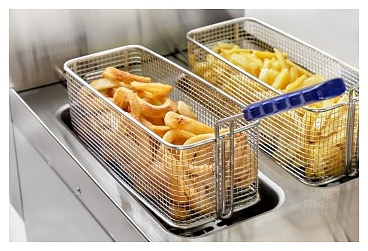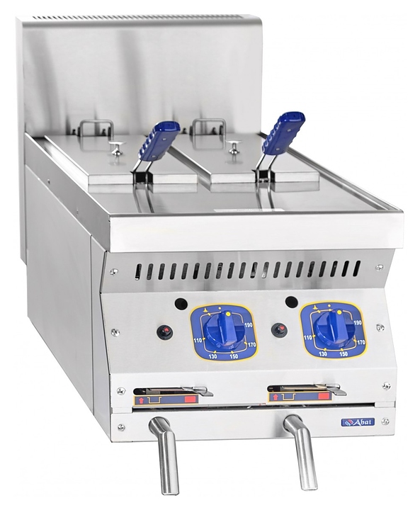 Фритюрница Abat ГФК-40.2Н предназначена для приготовления различных продуктов в большом количестве масла на предприятиях общественного питания и торговли. Модель оснащена системой газ-контроля, пьезорозжигом и регулируемыми по высоте ножками. Облицовка и боковые панели выполнены из нержавеющей стали AISI 304 толщиной 1 мм, задняя обшивка - из крашеного оцинкованного металла толщиной 1 м. В комплект поставки входят 2 съемные форсунки под сжиженный газ. Особенности: