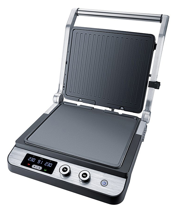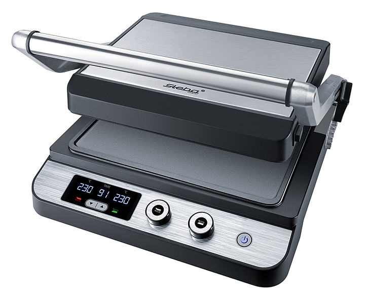 Гриль Steba FG 120 предназначен для жарки мяса, рыбы и овощей в частных домах, квартирах, отелях и офисах. Модель оснащена панелью управления со светодиодным дисплеем, двумя съемными пластинами с антипригарным покрытием и лотком для стока жира. Корпус выполнен из нержавеющей стали. В комплект поставки входят 1 гладкая и 1 рифленая пластины. Особенности: