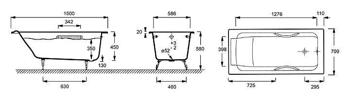 Ванна Jacob Delafon PARALLEL E2949-00 150х70 см, чугун