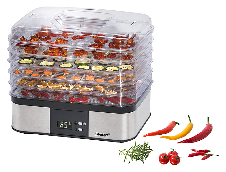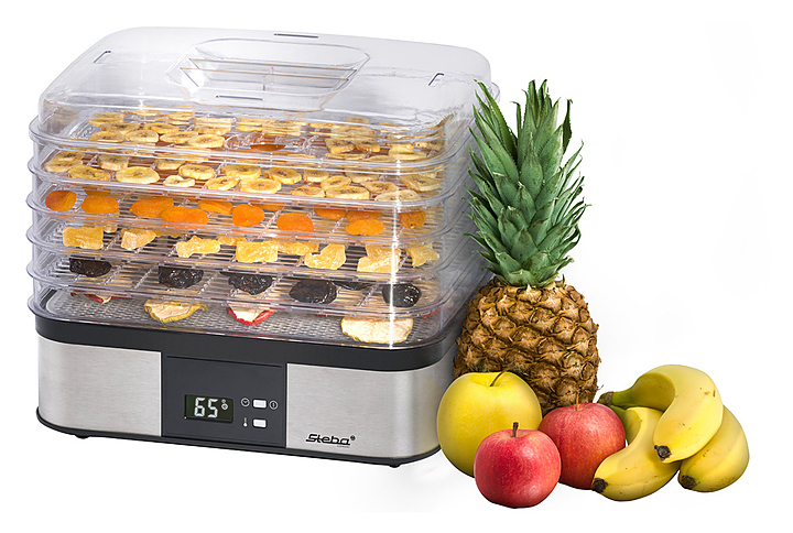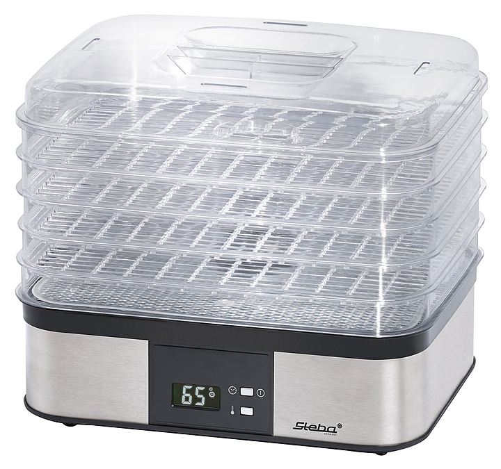 Сушилка для овощей и фруктов Steba ED 5 предназначена для быстрой и равномерной сушки фруктов, овощей, зелени и других продуктов в частных домах и квартирах. Модель оснащена электронным управлением с цифровым дисплеем и прозрачной крышкой. Корпус выполнен из нержавеющей стали. В комплект поставки входят 5 пластиковых лотков и коврик для трав. Особенности: