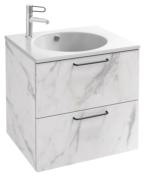 Тумба под раковину Jacob Delafon ODEON RIVE GAUCHE EB2520-R9-NR4 60 см, белый мрамор, черные ручки