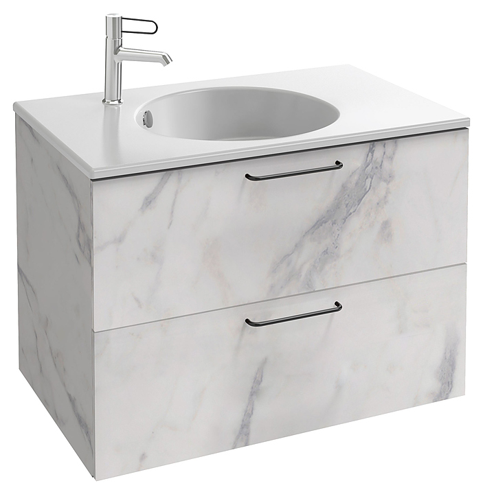 Тумба под раковину Jacob Delafon ODEON RIVE GAUCHE EB2522-R9-NR4 80 см, белый мрамор, черные ручки