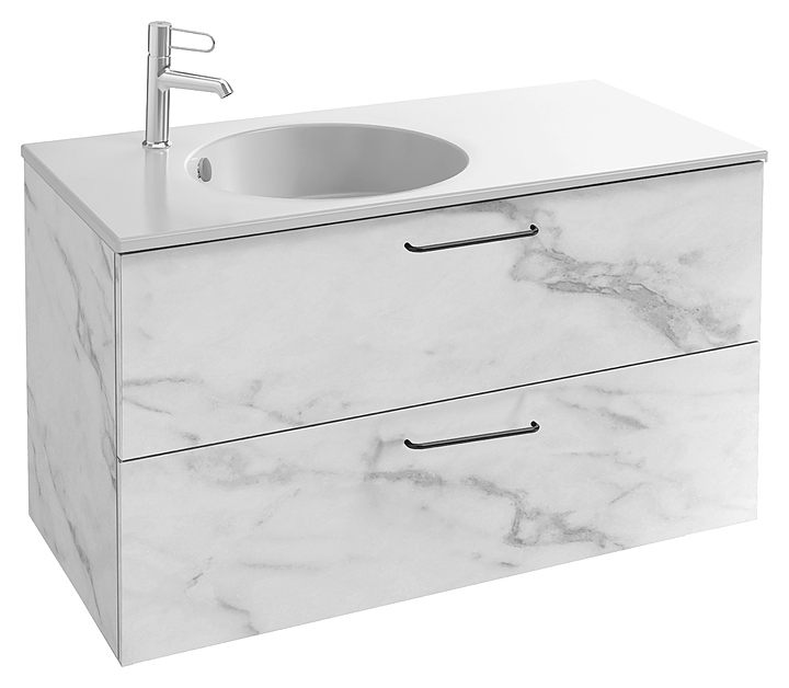 Тумба под раковину Jacob Delafon ODEON RIVE GAUCHE EB2524-R9-NR4 100 см, белый мрамор, черные ручки