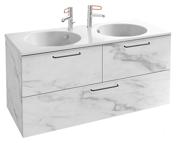 Тумба под раковину Jacob Delafon ODEON RIVE GAUCHE EB2545-R9-NR4 120 см, белый мрамор, черные ручки