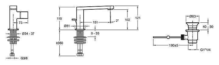Смеситель однорычажный Jacob Delafon COMPOSED E73050-TT