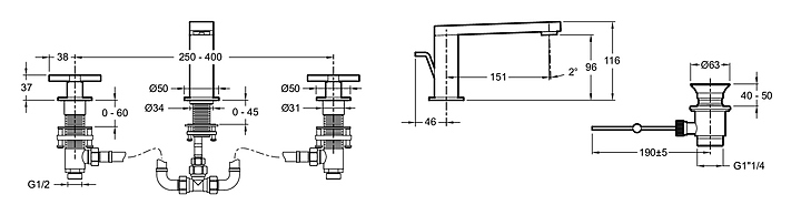 Смеситель двурычажный Jacob Delafon COMPOSED E73060-3-TT