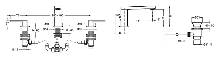 Смеситель двурычажный Jacob Delafon COMPOSED E73060-4-TT