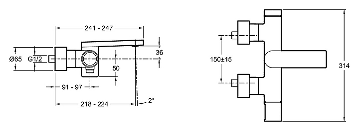 Смеситель для ванны и душа настенный Jacob Delafon COMPOSED E73095-TT