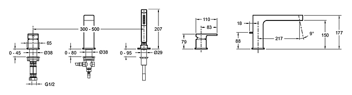 Смеситель для ванны и душа на три отверстия Jacob Delafon STRAYT E37337-CP