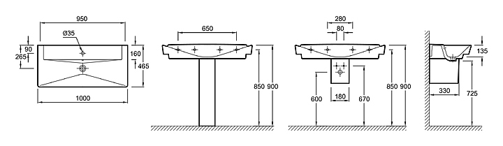 Раковина-столешница Jacob Delafon REVE E4801-00 100x46,5 см, керамика