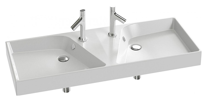 Двойная раковина-столешница JACOB DELAFON RYTHMIK EXM112-Z-00 от популярного французского бренда дополнит интерьер ванной комнаты. Благодаря подвесной конструкции раковина не занимает много места, что сэкономит пространство в небольшой ванной комнате. Наличие 2 чаш позволяет использовать раковину сразу двоим людям и обеспечивает большую гигиеничность за счет возможности разграничения детской и взрослой зон. Изделие выполнено из огнеупорной керамики, которая отличается высокой прочностью и долговечностью. Смесители в комплект поставки не входят и приобретаются отдельно. Особенности: