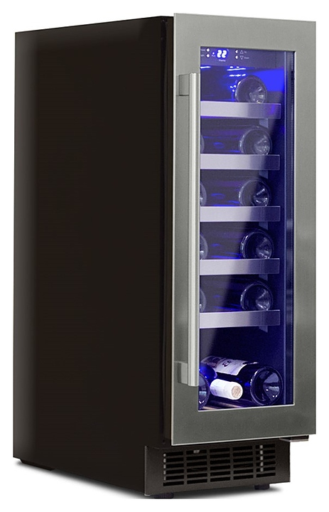Винный шкаф Cold Vine C18-KST1 создает оптимальные условия для сохранения всех вкусовых свойств разливного вина. Модель оснащена внутренним и внешним вентилятором, электронным термостатом, синей подсветкой и регулируемыми ножками. Корпус выполнен из металла черного цвета, дверь - из прозрачного тройного стекла с защитой от УФ лучей в рамке из нержавеющей стали, полки - из массива бука, ручка двери - из стали. Особенности: