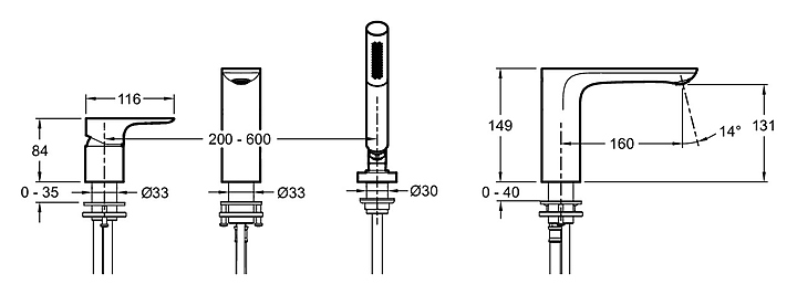Смеситель для ванны и душа на три отверстия Jacob Delafon ALEO E72292-CP