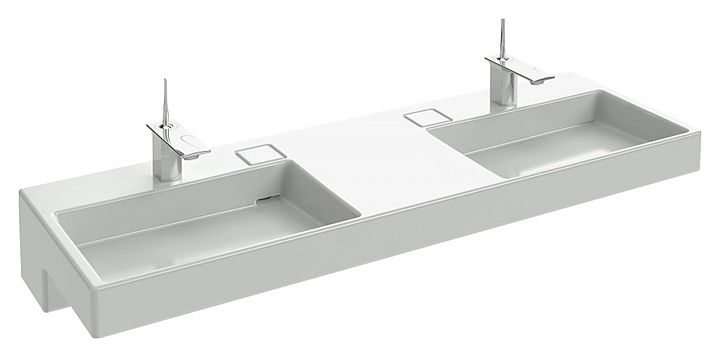 Двойная раковина-столешница JACOB DELAFON TERRACE EXA9112-00 от популярного французского бренда дополнит интерьер ванной комнаты. Модель отличается уникальным дизайном: L-образная форма с эстетичными, элегантными, точными геометрическими линиями. Благодаря подвесной конструкции раковина не занимает много места, что позволяет экономить пространство в ванной комнате. Наличие 2 чаш позволяет использовать раковину сразу двоим людям и обеспечивает большую гигиеничность за счет возможности разграничения детской и взрослой зон. Модель оснащена полочками, на которых удобно размещать необходимые аксессуары для ежедневного использования. Раковина оборудована системой слива FreeDrain, которая управляется простым нажатием. Скрытое сливное отверстие обеспечивает легкий уход. Подсветка по краю раковины экономит электроэнергию. Изделие выполено из огнеупорной керамики, которая отличается повышенной прочностью и гигиеничностью. Смесители в комплект поставки не входят и приобретаются отдельно. Особенности: