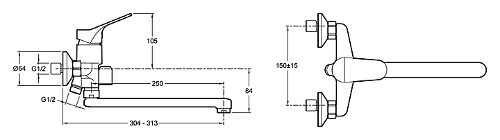 Смеситель для ванны и душа настенный Jacob Delafon BRIVE E78117-CP