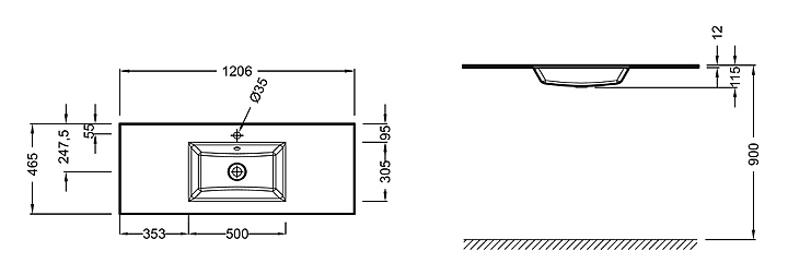 Раковина-столешница Jacob Delafon VOX EB2101-DD4 120х46 см, стекло