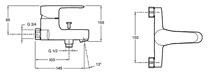 Смеситель для ванны и душа настенный Jacob Delafon JULY E16031-4-CP