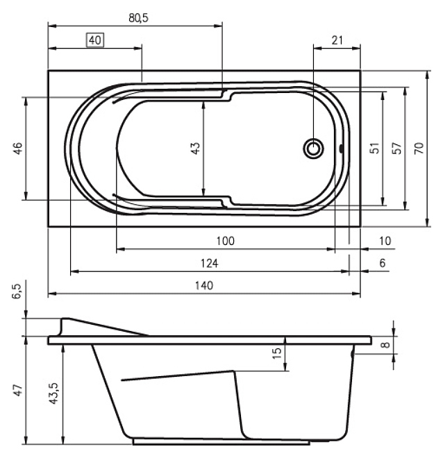 Ванна RIHO COLUMBIA 140x70 см, акрил