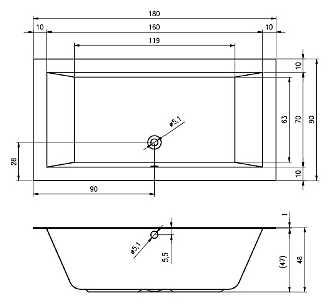 Ванна RIHO LUGO 180x90 см благодаря классическому дизайну и прямоугольной форме отлично впишется в любую ванную комнату. Сливное отверстие находится посередине, что позволяет располагаться в ванной с любой удобной стороны. Изделие выполнено из акрила, который мгновенно прогревается, обладает небольшим весом и высокими шумоизоляционными характеристиками, а также устойчив к механическим повреждениям, армированного стекловолокном с примесью полиэстра, дно усилено прочной ламинированной ДСП для большей прочности. Особенности: