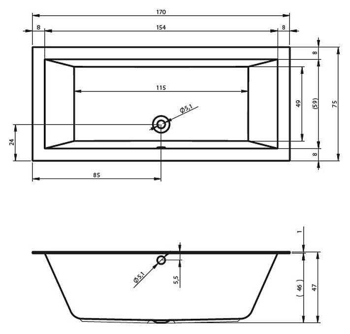Ванна RIHO LUGO VELVET 170x75 см, акрил