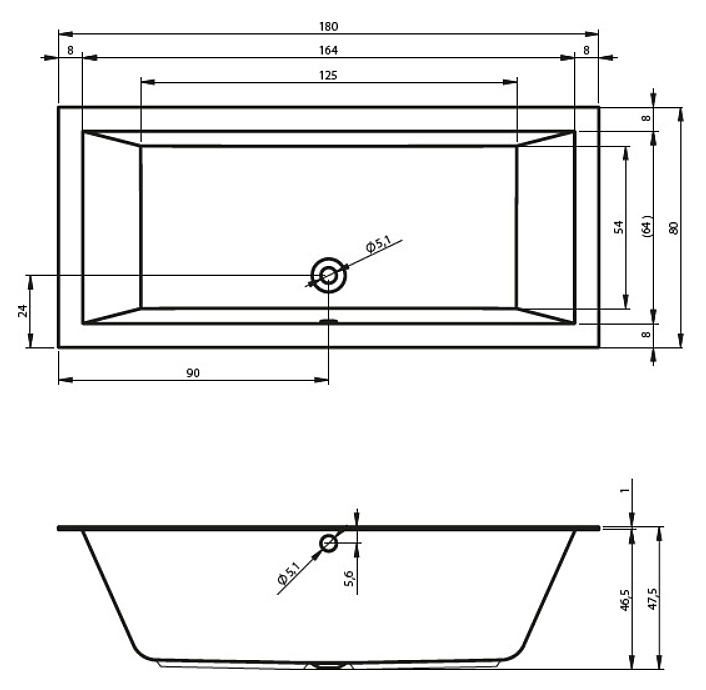 Ванна RIHO LUGO VELVET 180x80 см, акрил
