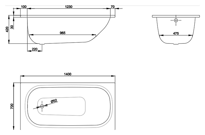 Ванна BETTE Form 2940-000 AD PLUS 140х70 см, сталь