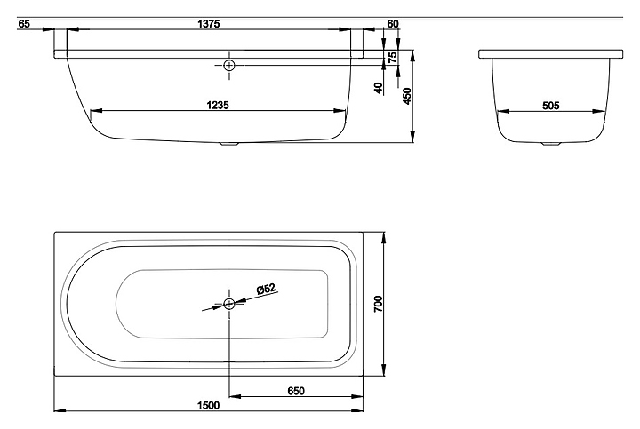 Ванна BETTE Ocean 8859-000 PLUS 150x70 см, сталь