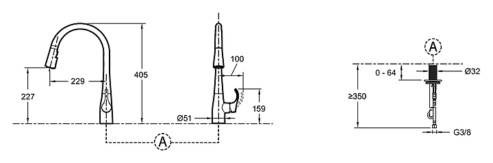 Смеситель для кухни с вытяжным изливом Jacob Delafon SIMPLICE 596D-VS