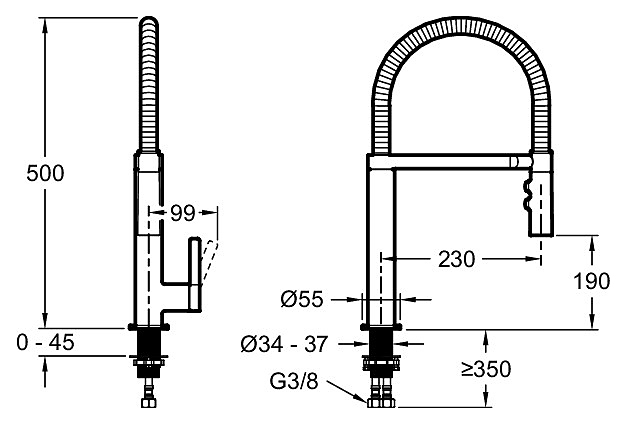 Смеситель для кухни с вытяжным изливом Jacob Delafon SPIRALE E23310-CP