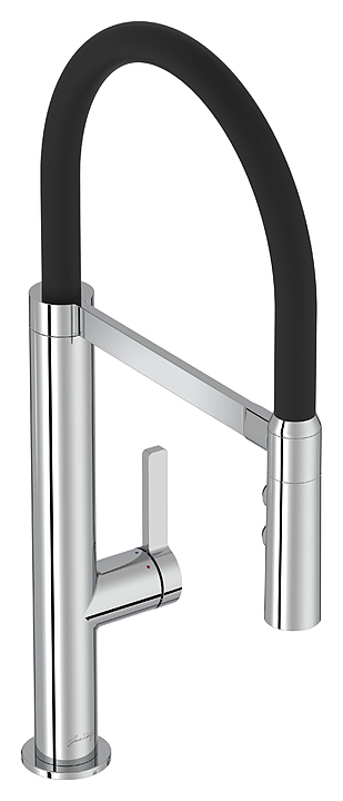 Смеситель для кухни с вытяжным изливом Jacob Delafon RAPHAEL E23311-CP предназначен для установки на кухонную мойку и оснащен более длинным изливом для того, чтобы быть направленным ближе к центру мойки для удобства использования. Модель является частью коллекции RAPHAEL, что позволяет выдержать дизайн кухни и ванной комнаты в едином стиле. Однорычажный тип управления позволяет очень быстро и плавно регулировать подачу воды одной рукой. Изделие выполнено из металла с хромированным покрытием. Особенности: