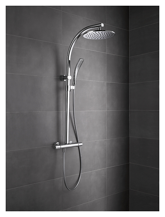 Душевая стойка Jacob Delafon TALAN E11717RU-CP используется в ванных комнатах. Модель оснащена прямоугольной лейкой и круглым верхним душем, нескручивающимся гладким шлангом, встраиваемым переключателем режимов на ручке контроля расхода воды и однорычажным термостатическим смесителем. Стойка крепится к стене. Особенности: