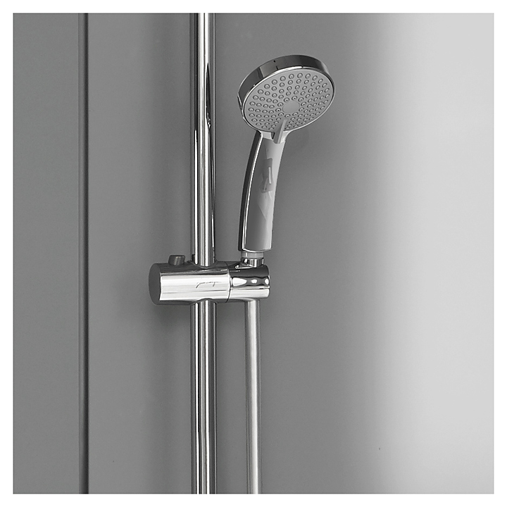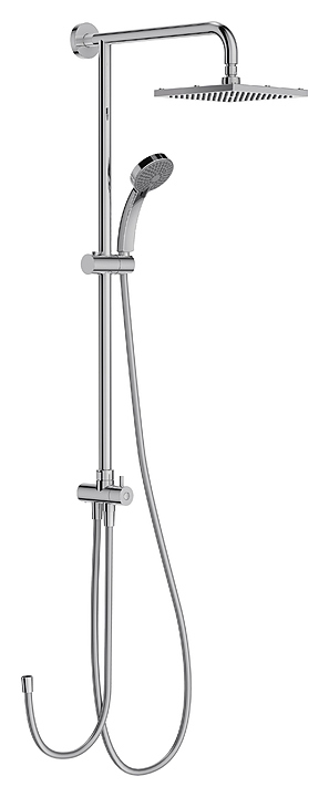 Душевая стойка Jacob Delafon EO E45893-CP используется в ванных комнатах. Модель оснащена круглой лейкой и квадратным верхним душем, двумя нескручивающимся гибкими шлангами и скрытым переключателем. Стойка крепится к стене. Особенности: