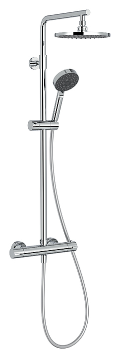 Душевая стойка Jacob Delafon BRIVE E24322-CP используется в ванных комнатах. Модель оснащена круглой лейкой и круглым верхним душем, нескручивающимся гибким прочным шлангом, переключателем потока в ручке напора водыми однорычажным термостатическим смесителем. Стойка крепится к стене. Особенности: