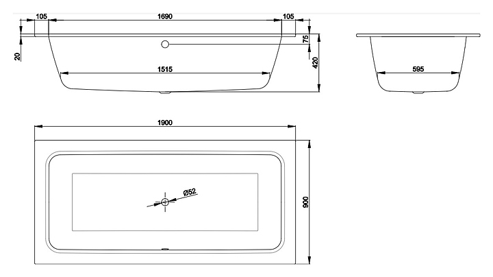 Ванна BETTE One 3314-000 190x90 см, сталь