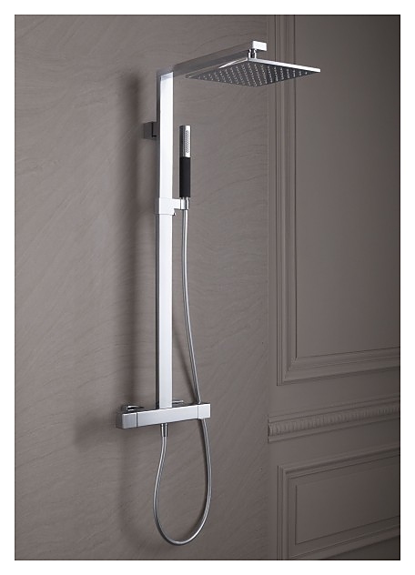 Душевая стойка Jacob Delafon STRAYT E98321-CP используется в ванных комнатах. Модель оснащена прямоугольной лейкой и квадратным верхним душем, нескручивающимся гибким прочным шлангом с системой ANTI-TWIST, переключателем режимов на ручке контроля расхода воды и однорычажным термостатическим смесителем. Стойка крепится к стене. Особенности: