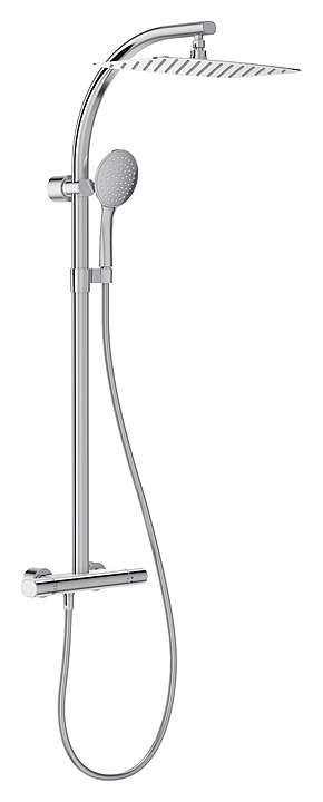Душевая стойка Jacob Delafon TALAN E20642RU-CP используется в ванных комнатах. Модель оснащена круглой лейкой и прямоугольным верхним душем, нескручивающимся гибким шлангом, встраиваемым переключателем и однорычажным термостатическим смесителем. Стойка крепится к стене. Особенности:
